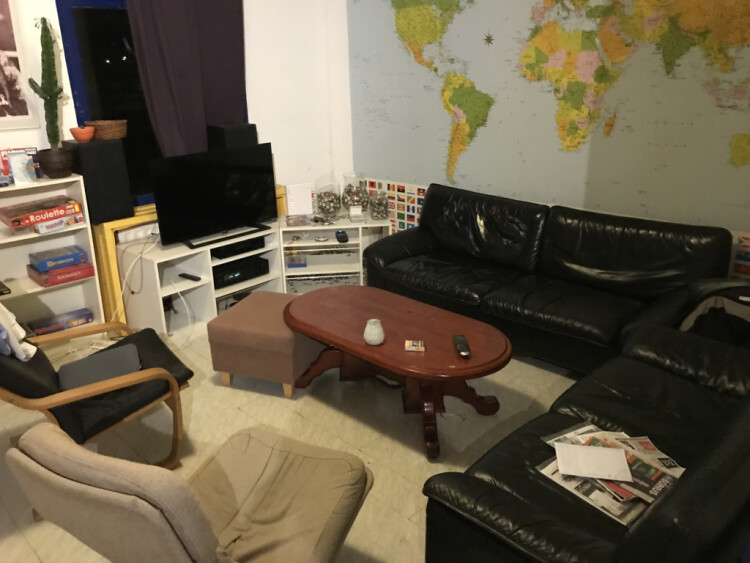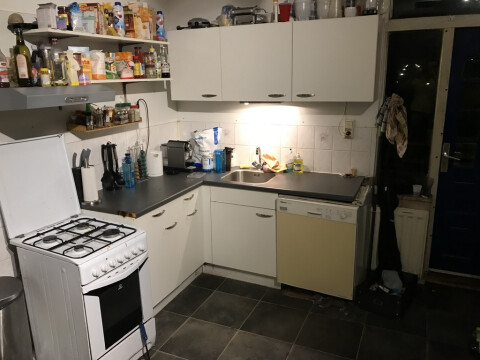 De ligging is een bovenwoning boven de Christine le Duc. Het huis heeft een ruime woonkamer (37m2 ongeveer) met aansluitend de keuken. Je deelt de algemene ruimtes met ons drieën. Daarnaast hebben we een vaatwasser en een wasmachine wat natuurlijk inclusief is. De kamer ligt op de begane grond van ons huis. De huur is ongeveer €300,- (inclusief) per maand (9m2 ongeveer).