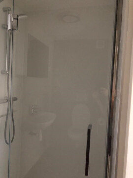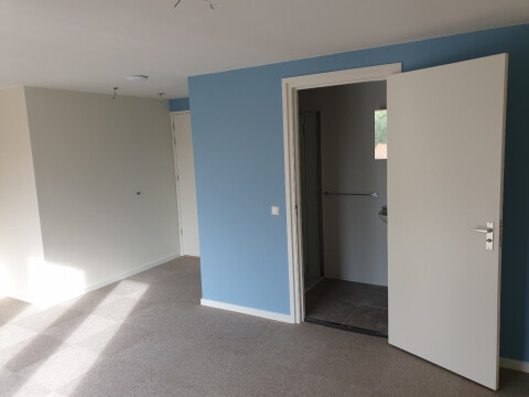 De kamer is 22,7m2 en heeft een eigen badkamer van 3,1m2 met douche, wastafel, toilet, spiegelkastje met deuren en accessoires.